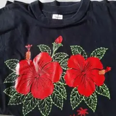 【新品・未使用】ハイビスカス花柄スリムフィット ホワイトTシャツ