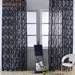 ブラック リーフ バブル カーテン 黒 2枚セットフラワー ボイル 仕切り