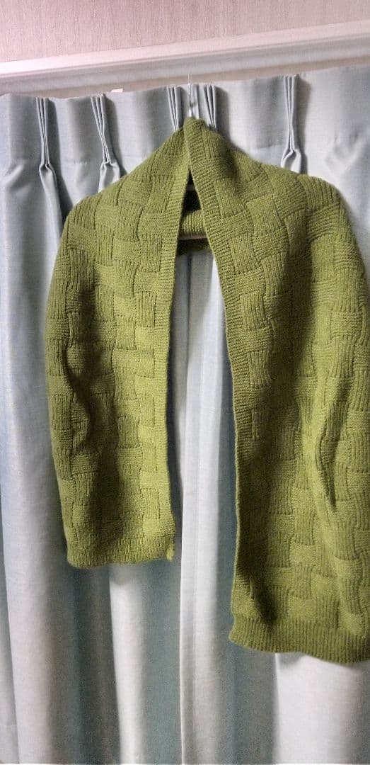 【美品】『マフラー、編み込み模様。緑色、袋あり』新品未使用27×144cm
