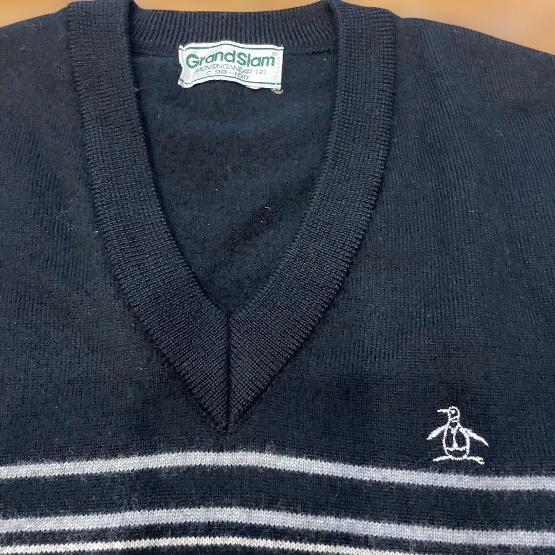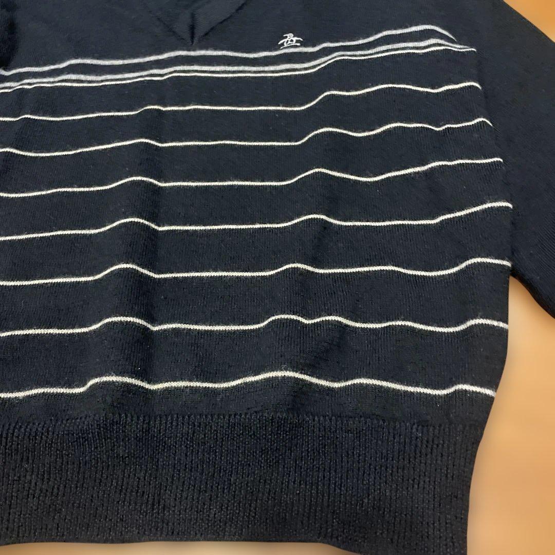 マンシングウェアGrand Slam Vネックセーター 黒 ストライプ