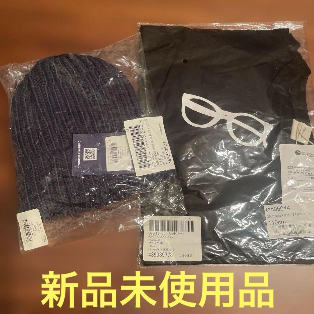 新品未使用品 メガネ柄カットソー&ニット帽
