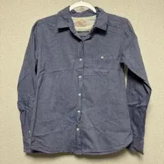 ブルー ボタンアップシャツ 長袖 Lサイズ ポケットつき 綿100%