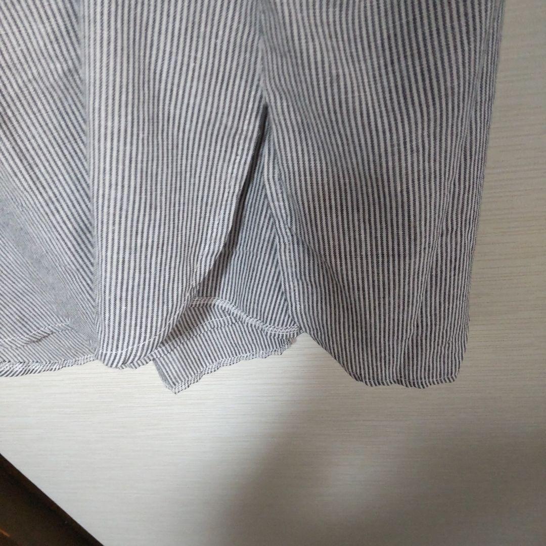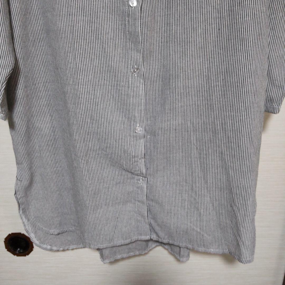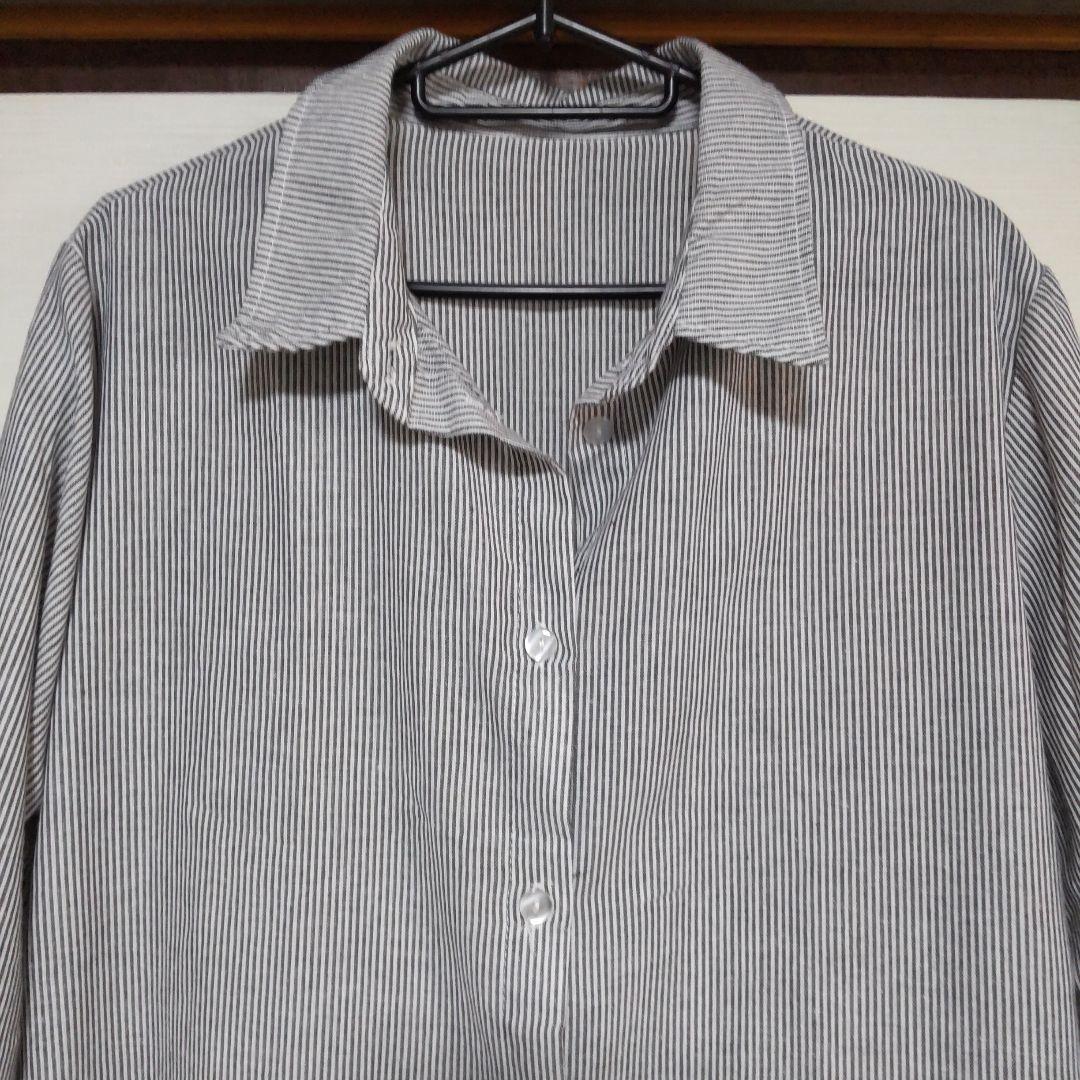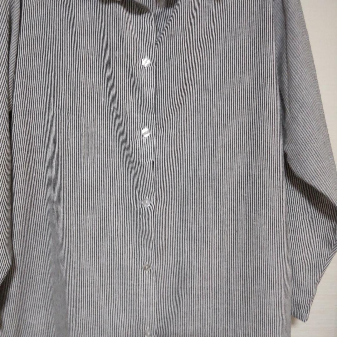 PREZZOグレー ストライプ 長袖 シャツワンピース ゆったりサイズ