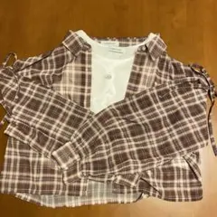 Love toxic インナー付きシアーチェックシャツ