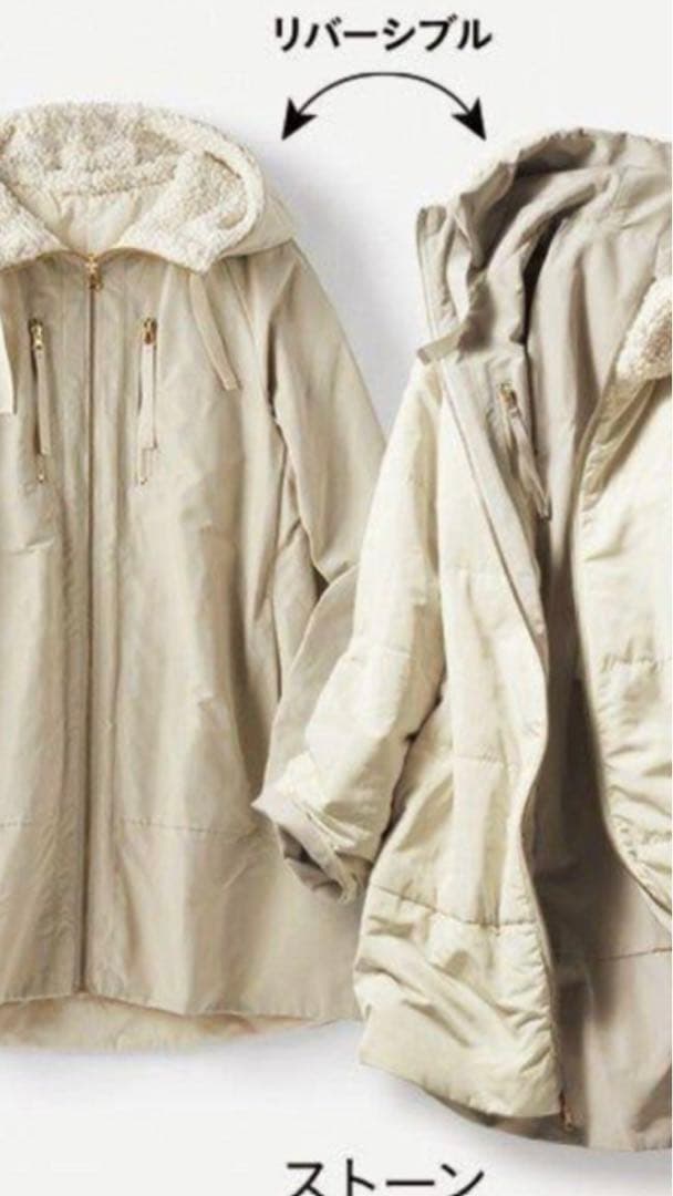 DoCLASSE マジカルサーモ・ボアフードコート ストーンカラーXXL