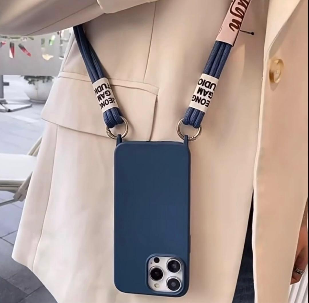 iPhoneケース iPhone13pro ショルダーケース 紐付き 青 カバー