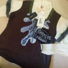 刺繍入りニットセーター グレー