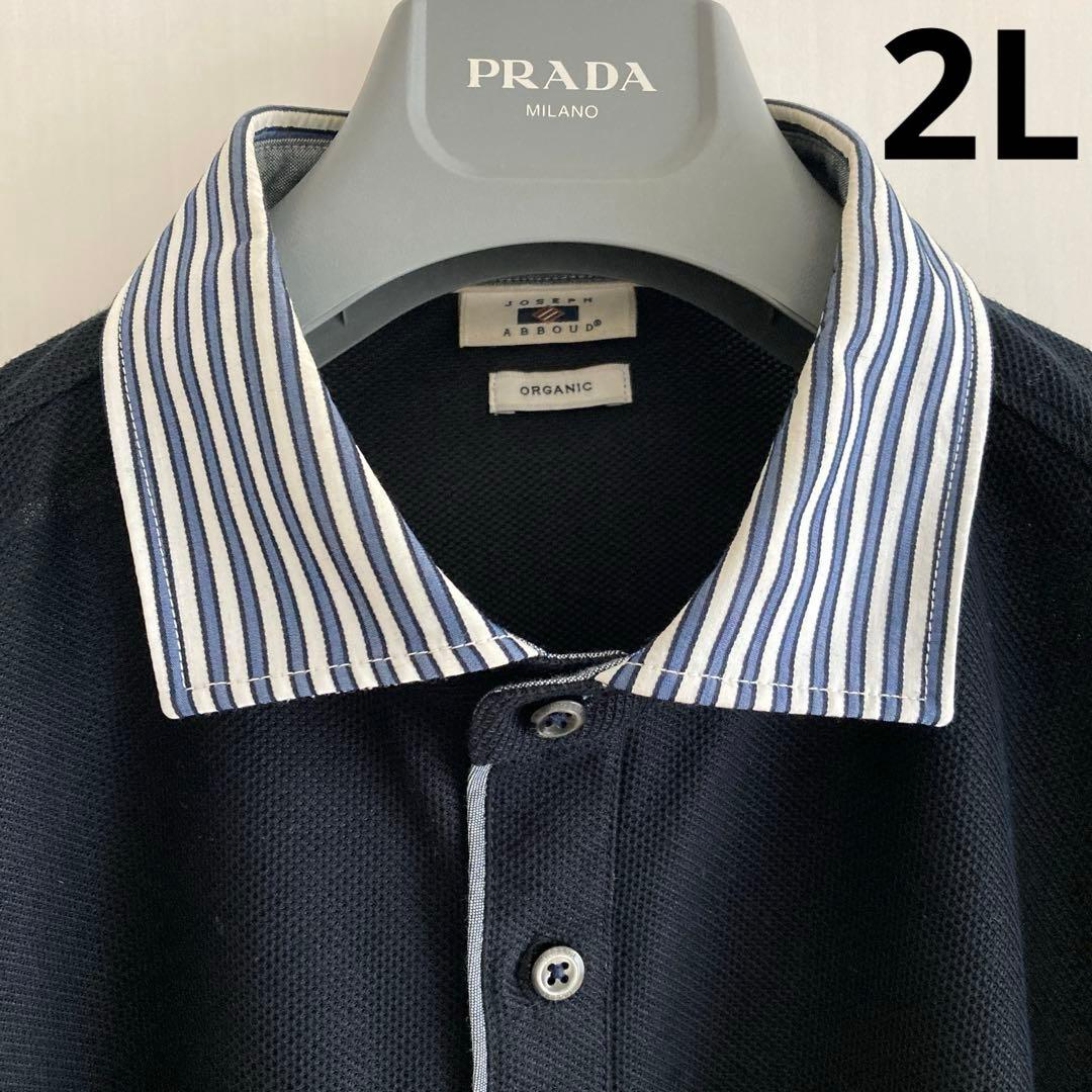 JOSEPH ABBOUD ネイビー ストライプ襟 長袖ポロシャツ 2Lサイズ