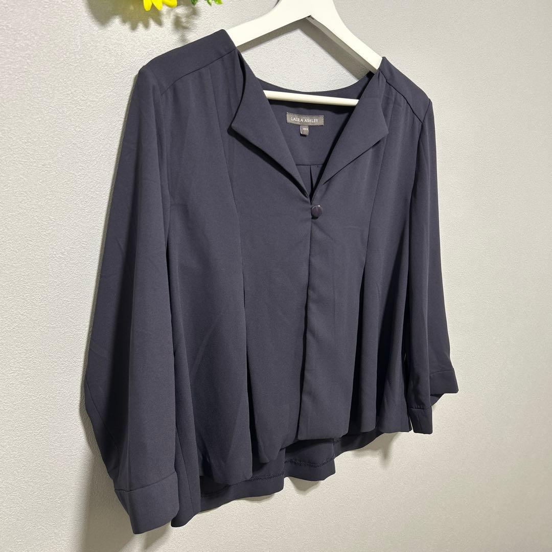 【LAURA ASHLEY】✨美品✨ シャツ 長袖 襟付き 袖フレア ネイビー