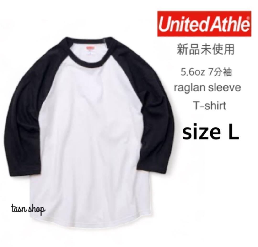 【ユナイテッドアスレ】新品未使用 ラグラン 7分袖 Tシャツ 白×黒 L