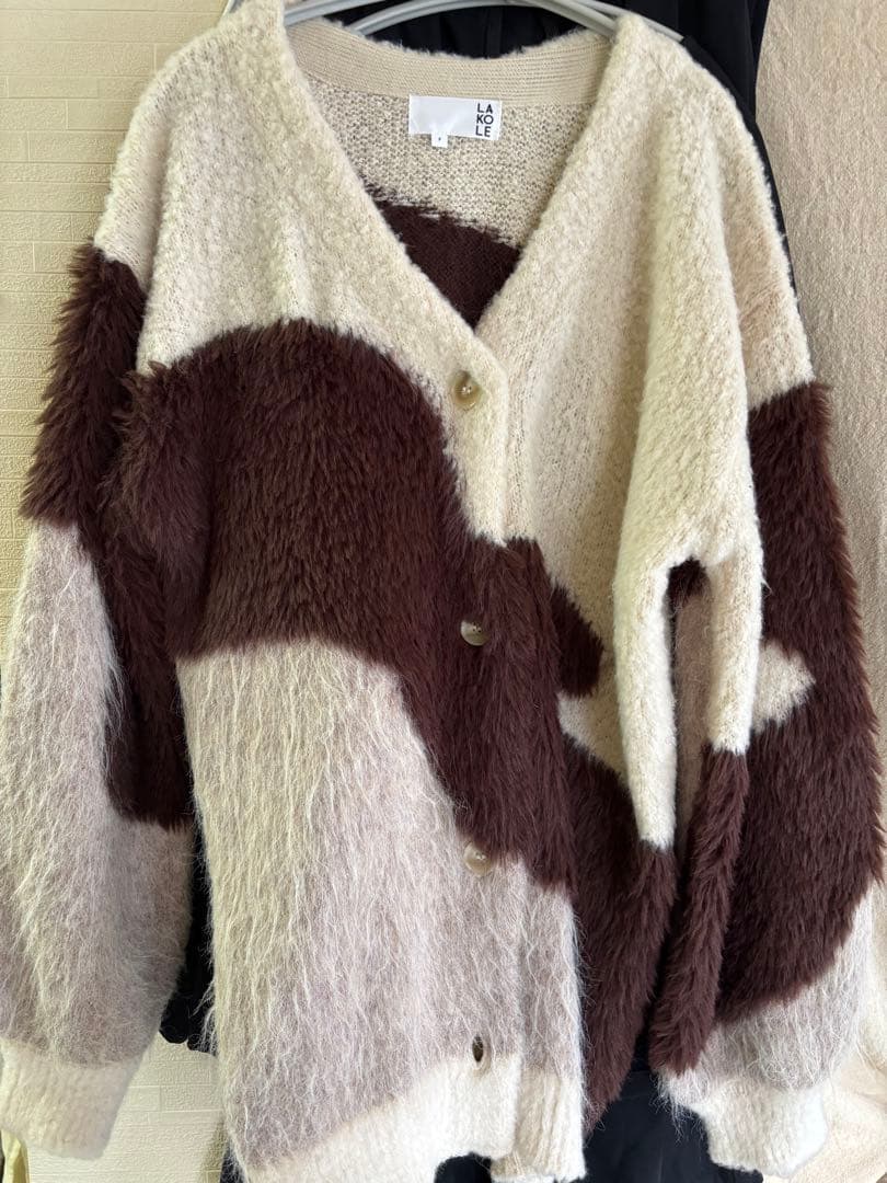 LAKOLE 今季新作インターシャ配色カーディガン モカ59 F
