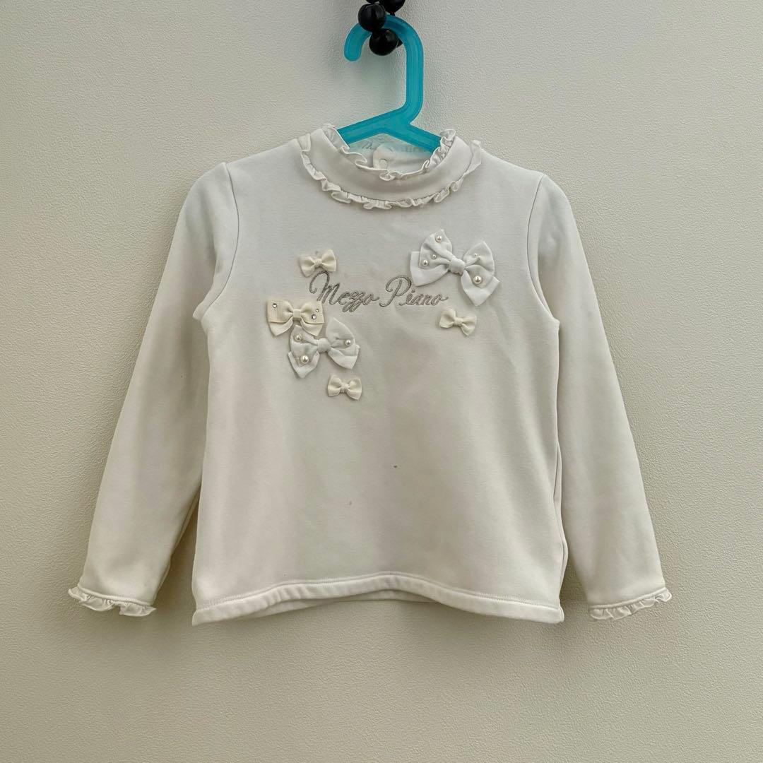 メゾピアノ 裏シャギートップス トレーナー 120 リボンパール フリル 裏起毛