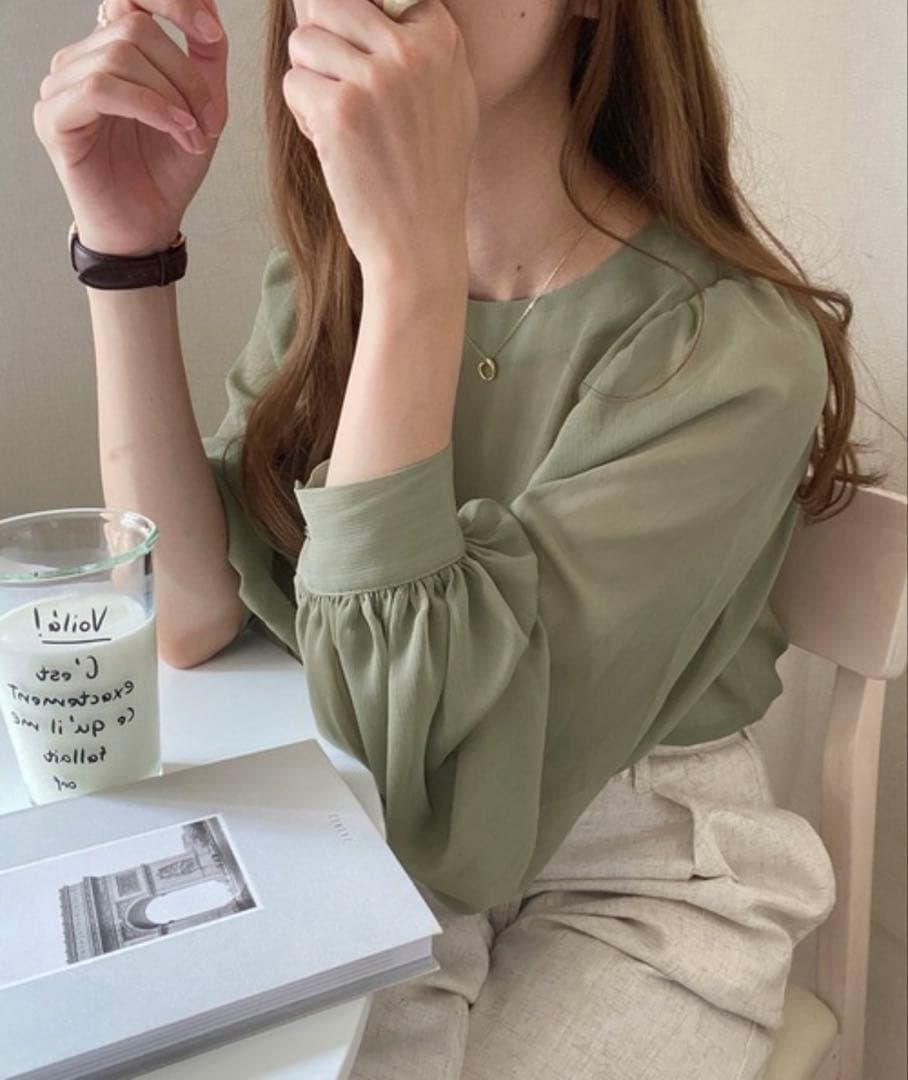 JUNOAS カーキ グリーン シャツ シアー ブラウス Sサイズ 長袖