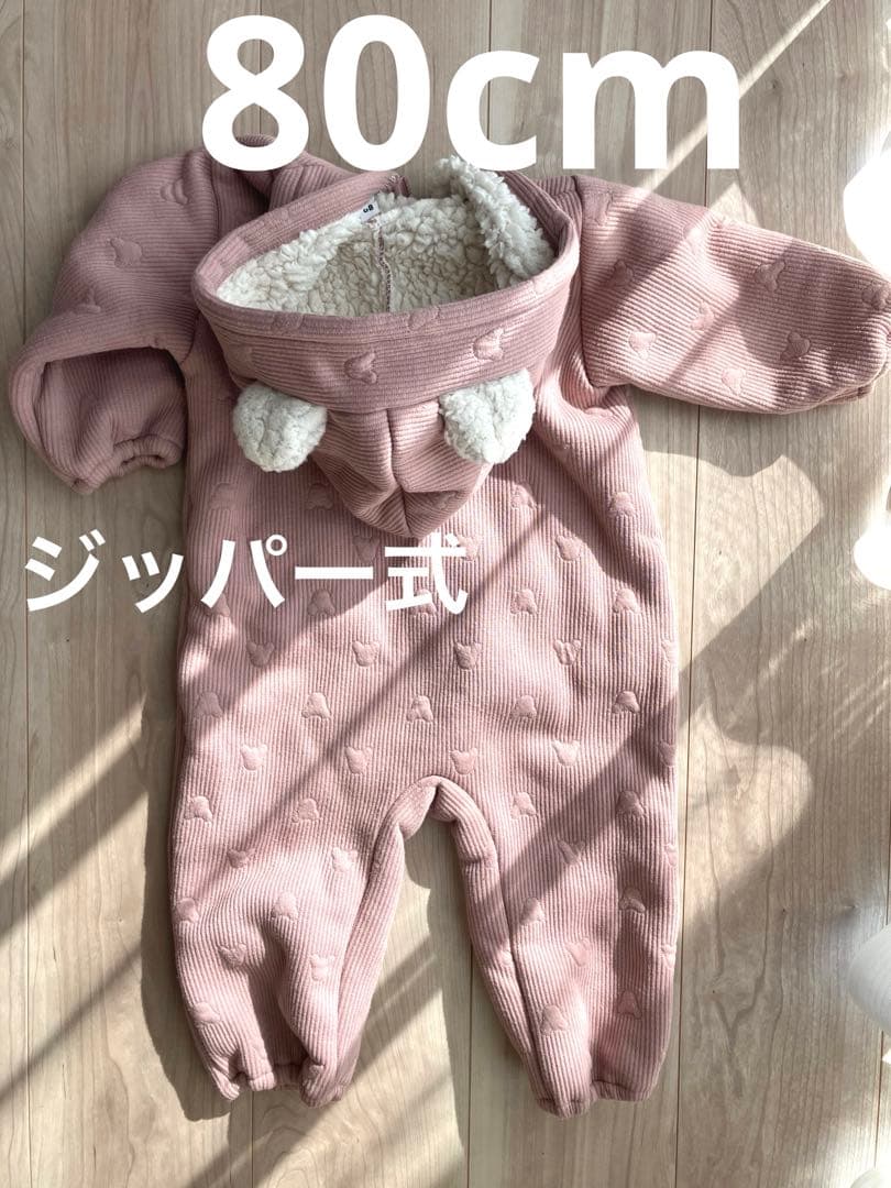 クマ もこもこ フード付きロンパース 80cm 冬用
