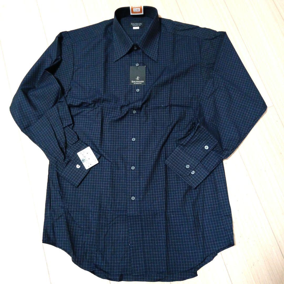 新品SOLFEGGIO ダークブルー チェック柄 長袖シャツ L136番
