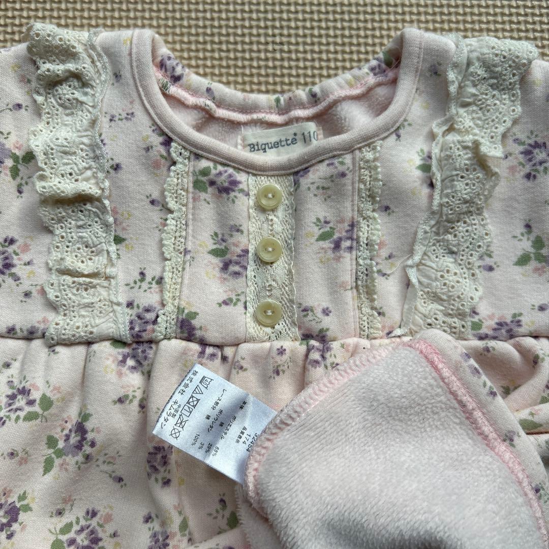 裏起毛 ビケットクラブ ピンク 紫花 トレーナー 110
