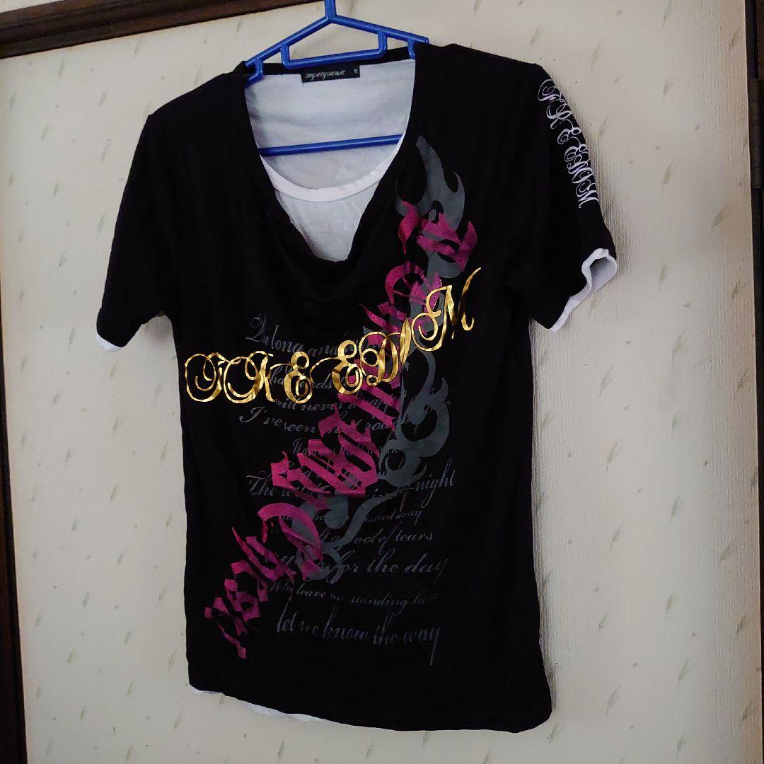 平成 お兄系 デザイン首元ドレープTシャツ サイズМ V系