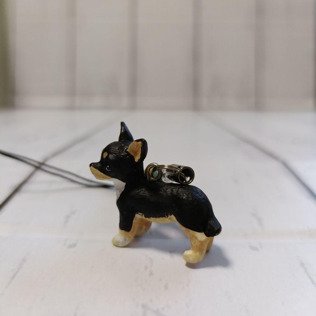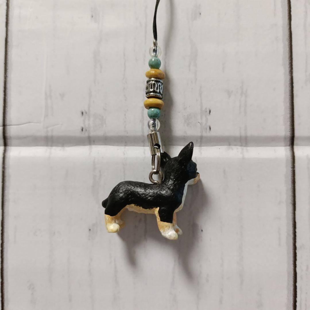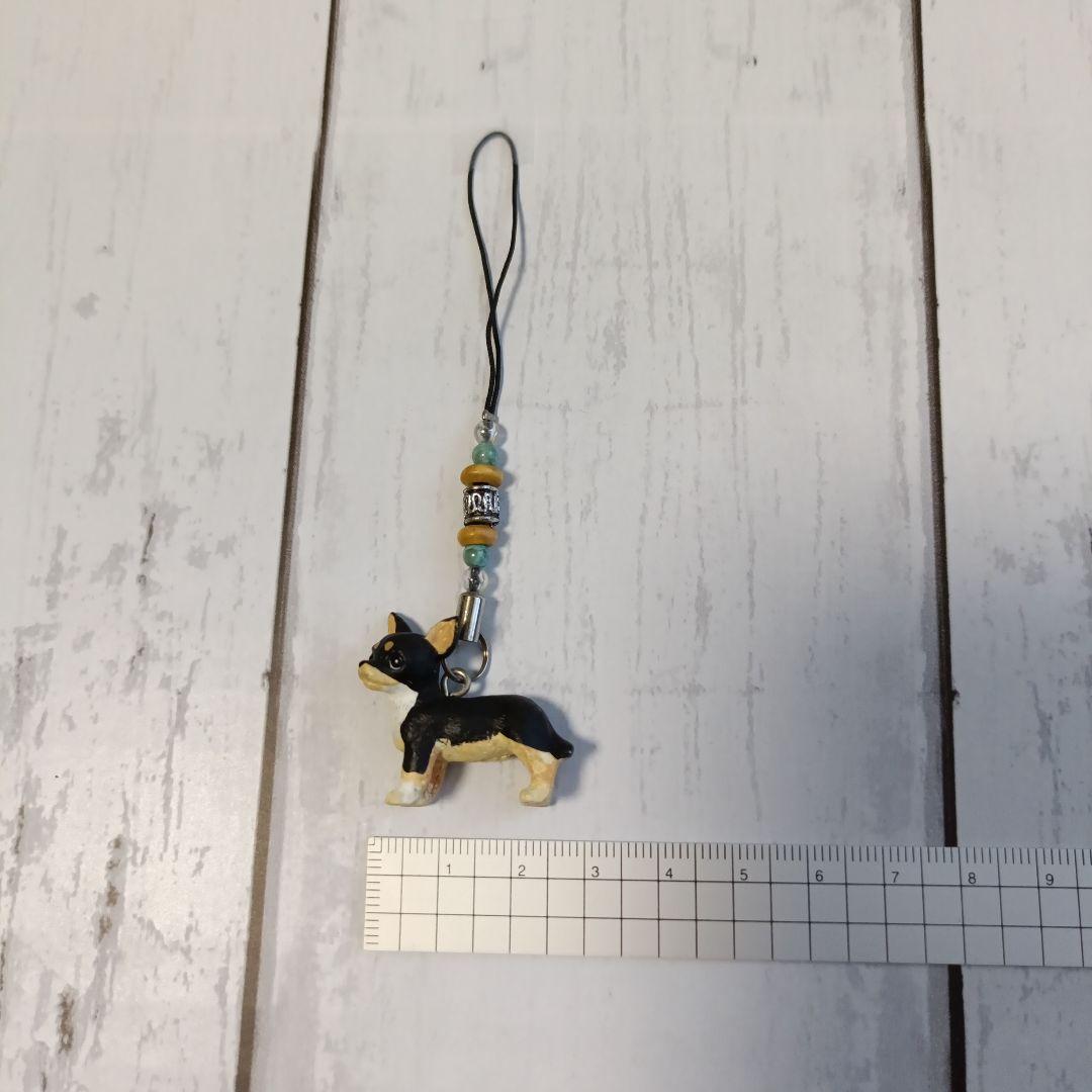希少!ブラックタンスムースチワワ ビーズ付きストラップ