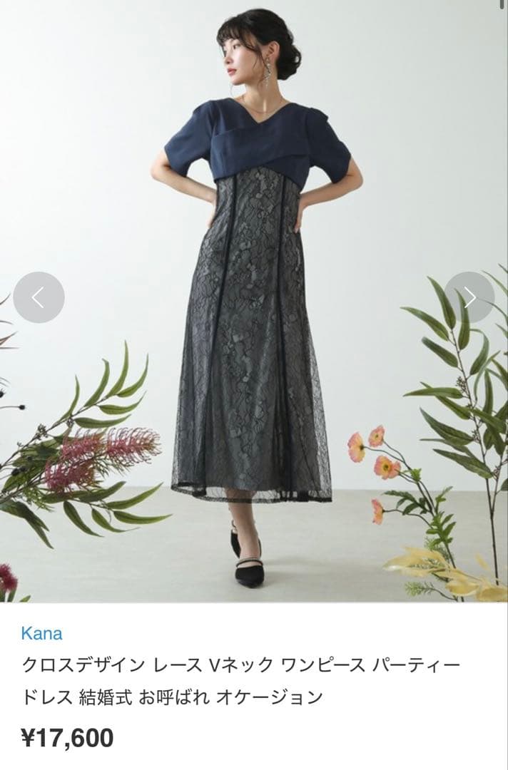 kanaカナ ネイビー ブルー クロスデザイン レース Vネック ワンピース