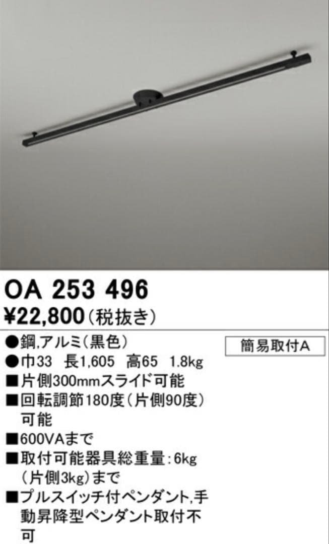 オーデリック OADLIC OA253496 ライティングレール ブラック