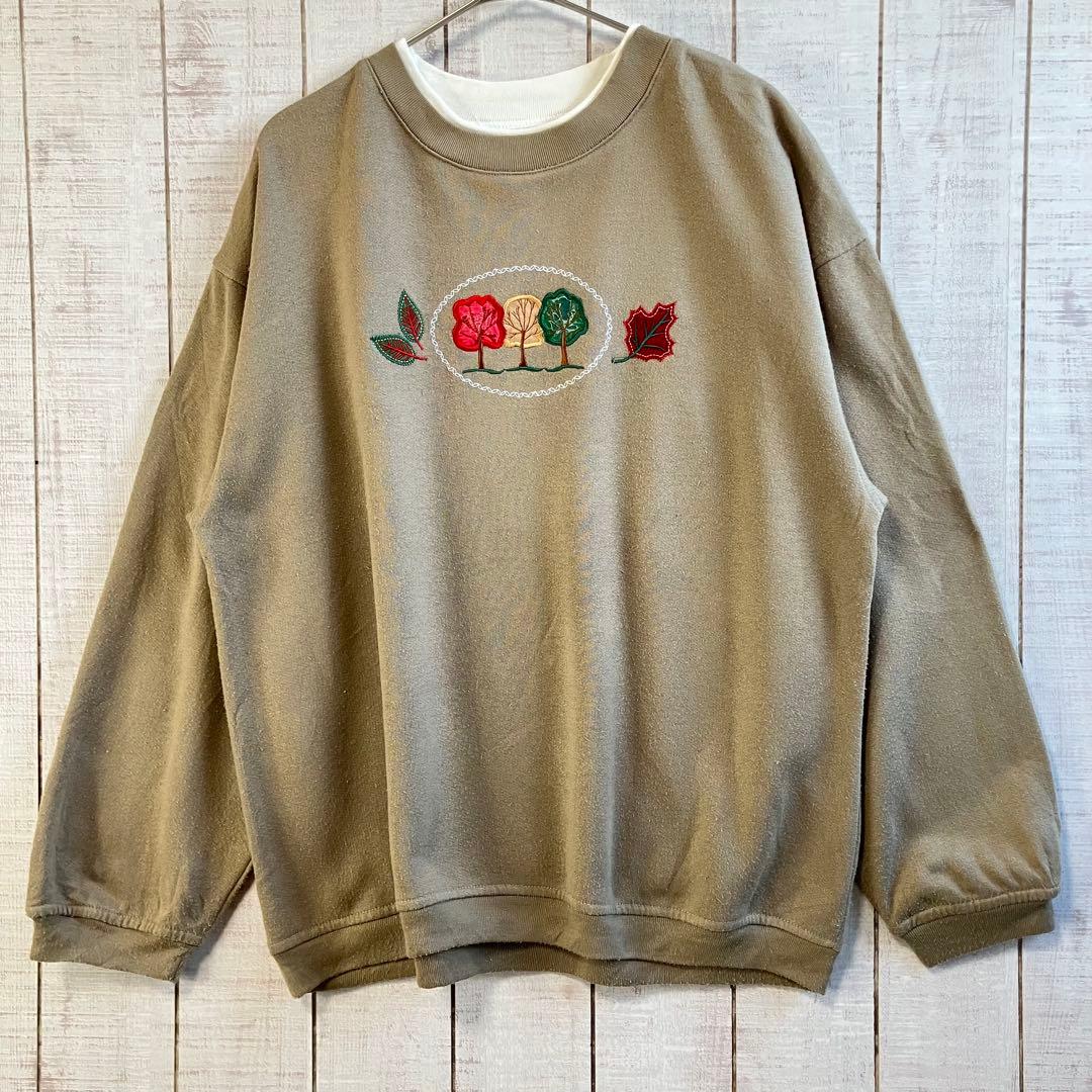 古着 長袖 スウェット 裏起毛 刺繍 アメカジ ダサカワ