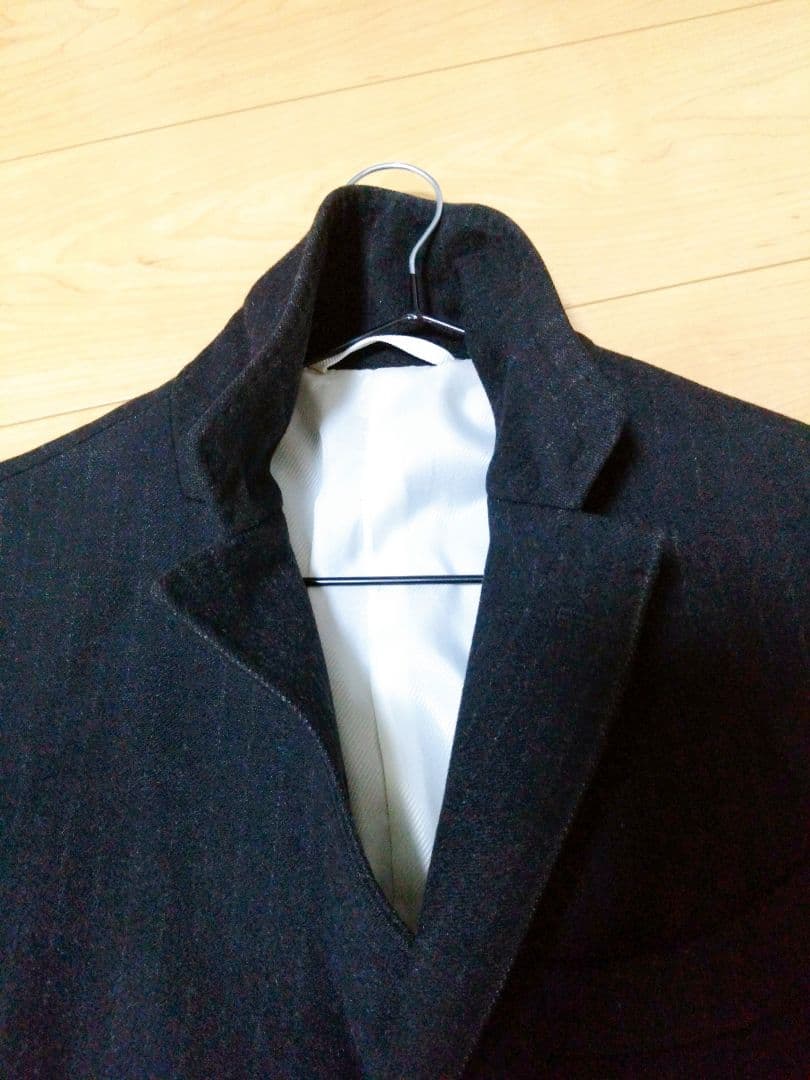 ウールコート スタンドカラーコート スーツセレクト ブラック ストライプ