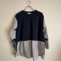 seasonreasonネイビーとストライプの長袖チュニック