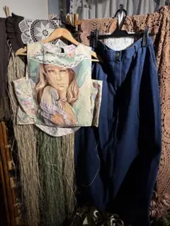 刺繍デザインのトップスとワイドパンツセット Vintage