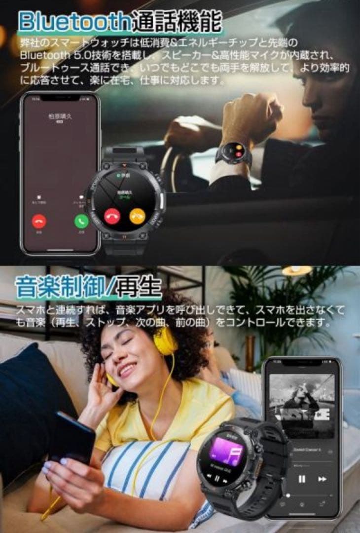 軍用規格 スマートウォッチ 1.39インチ 通話機能 防水 Bluetooth