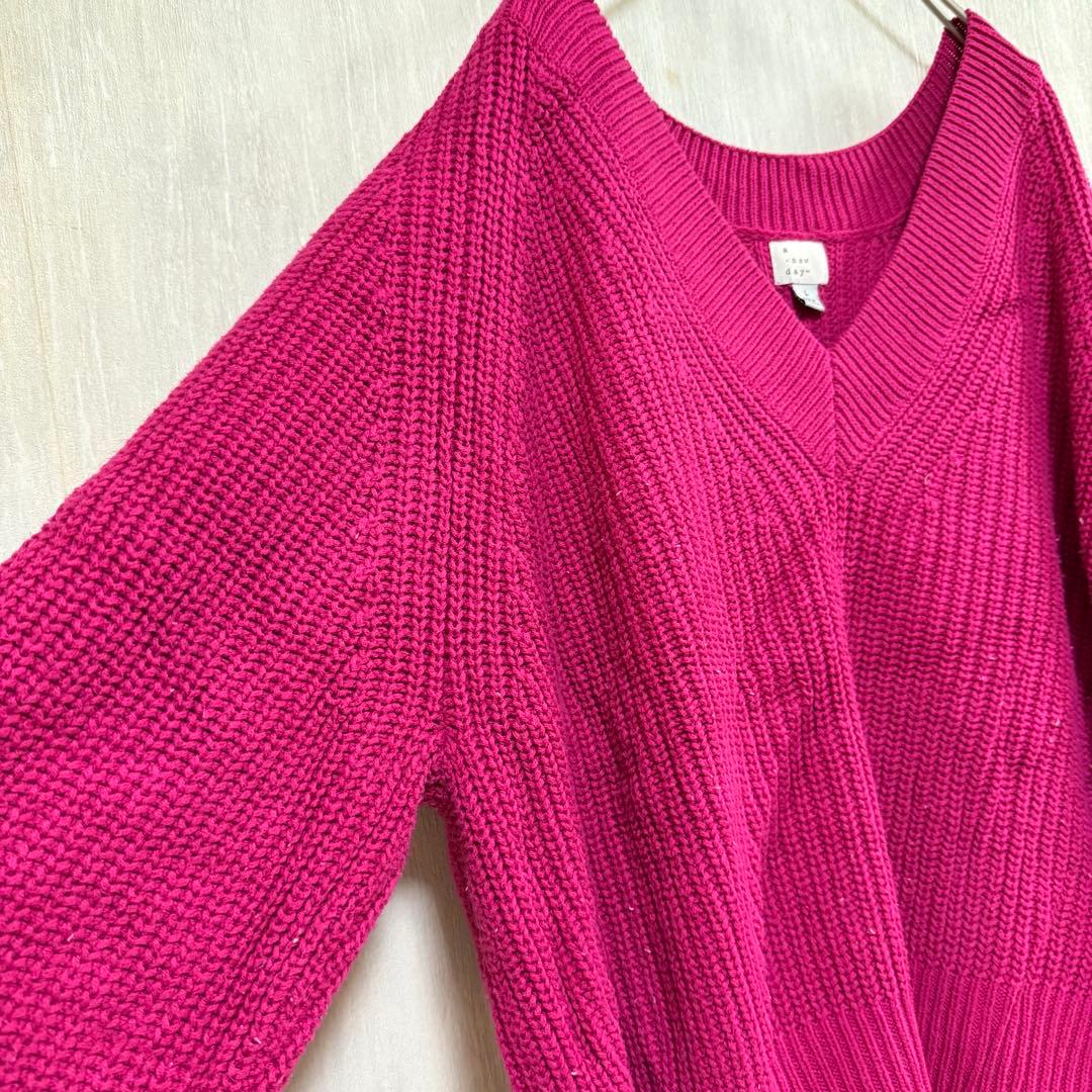 a.new day 【L】ピンク Vネック セーター オーバーサイズ 古着