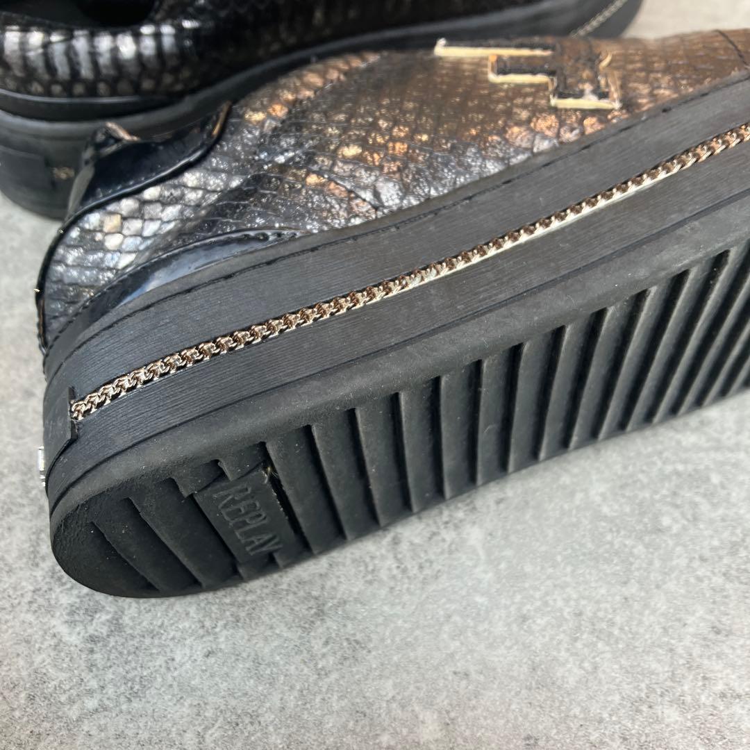 REPLAY リプレイ ジップアップ スニーカー エナメル 黒