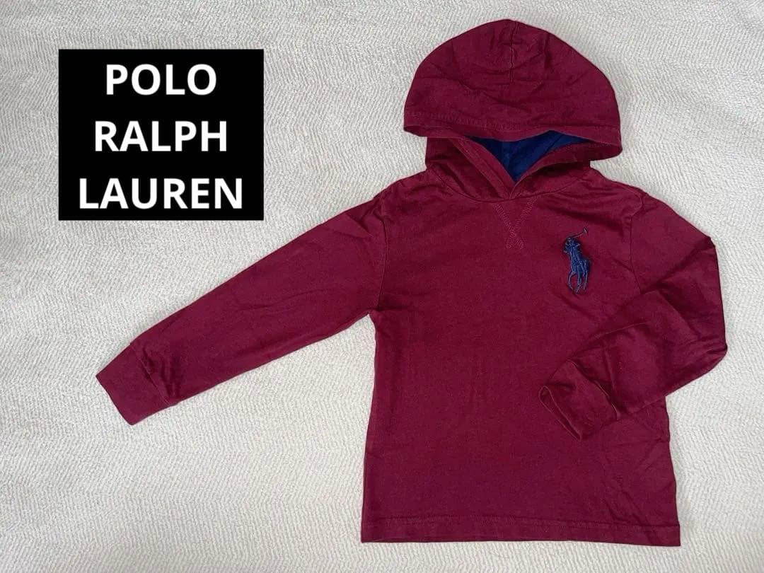 POLO RALPH LAUREN バーガンディ フード付き長袖カットソー
