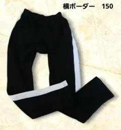 ブラック 裏起毛ロングパンツ 白ストライプ 150