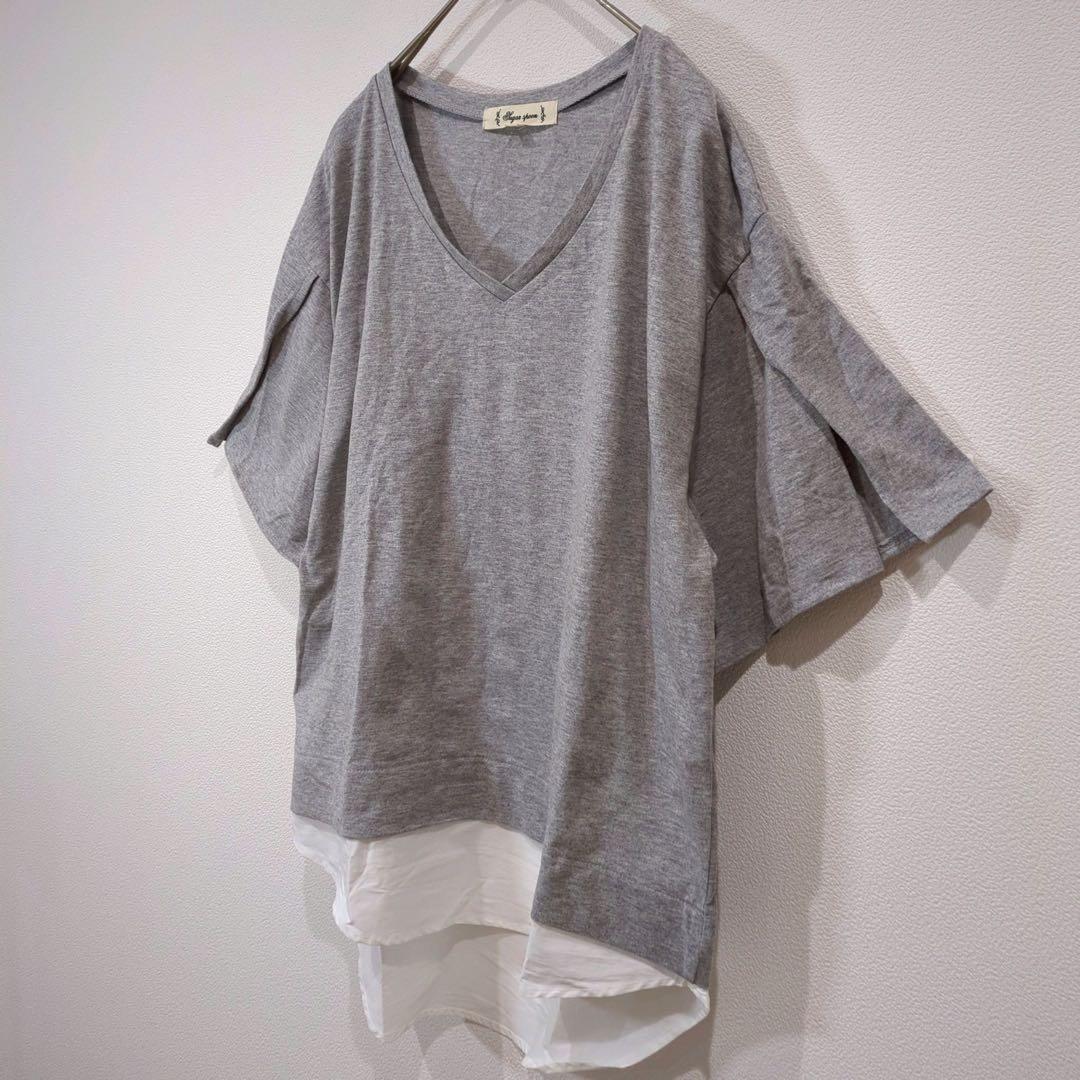 Sugar spoon 半袖ドッキングTシャツ チュニック グレー×ホワイト F