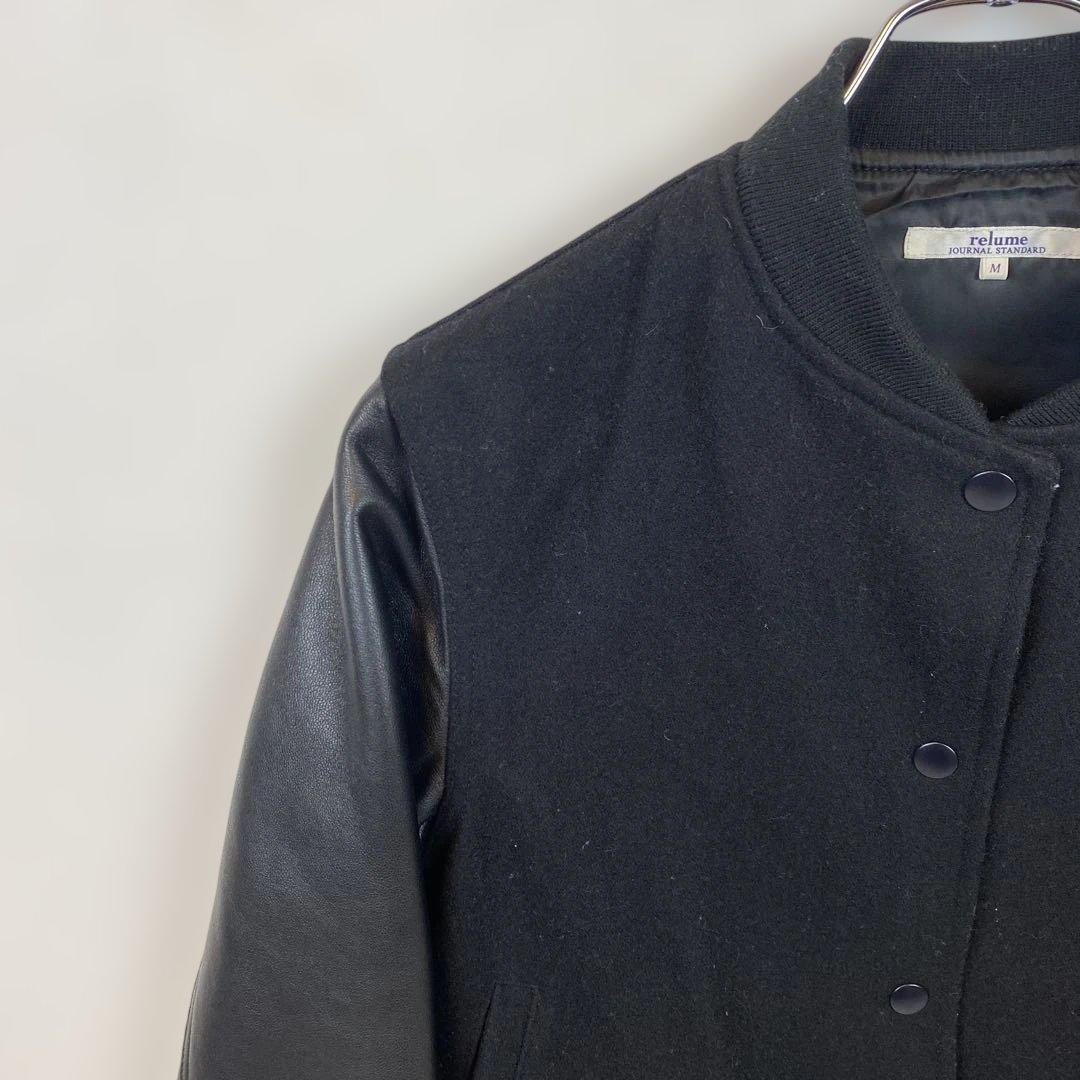 【relume】ウール袖部羊革レザー スタジャン 黒 サイズM