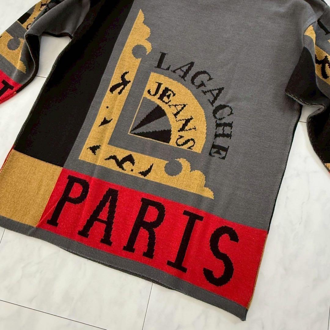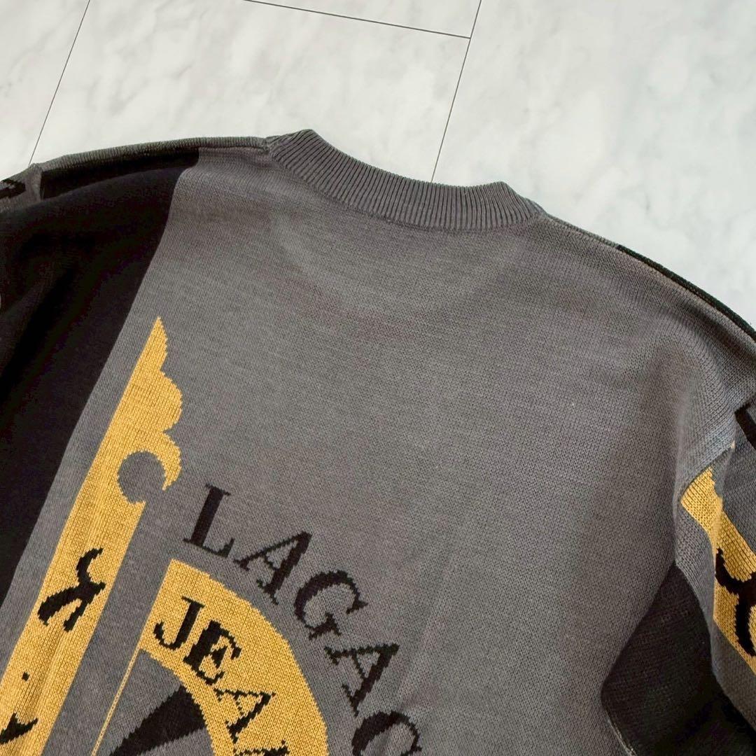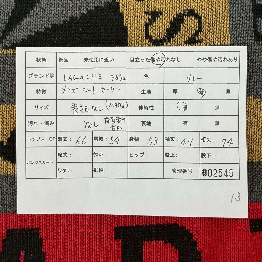 希少【ラガチェ】メンズニットセーター・ヴィンテージ・個性的◇グレー系・M相当