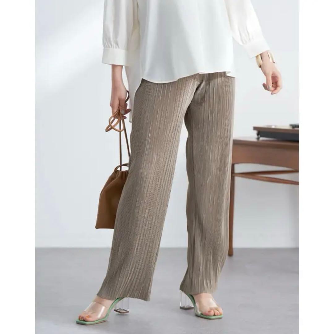 【earth music&ecology】リブワイドパンツ グレージュ