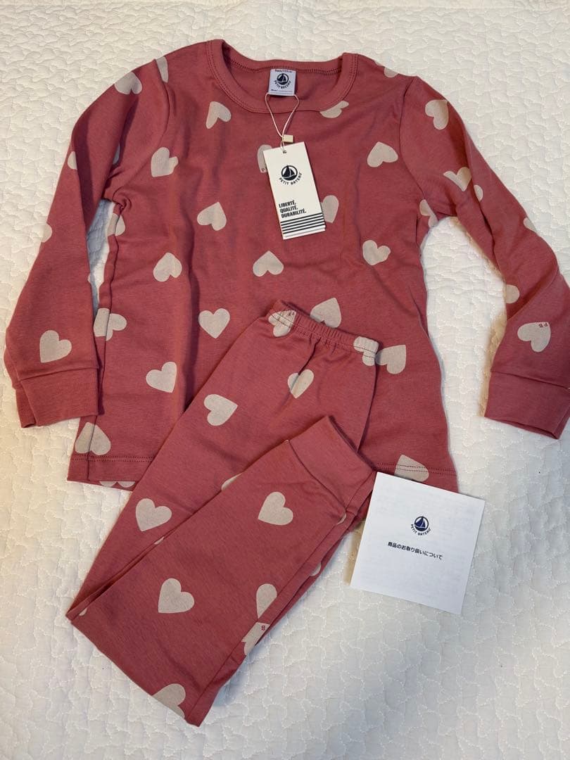 PETIT BATEAU ハート柄長袖パジャマ 110cm 5ans