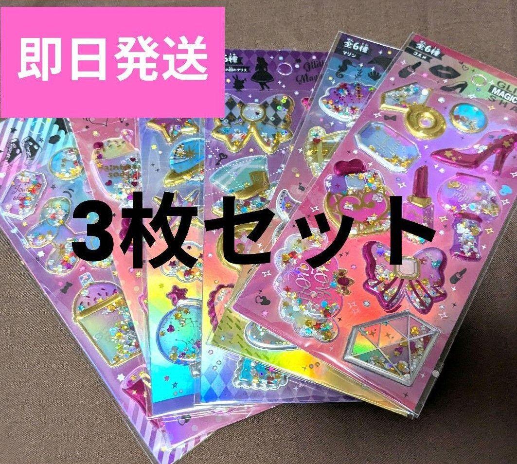 グリッター シャカシャカ ホログラム 立体シール 3Dシール 3枚セット