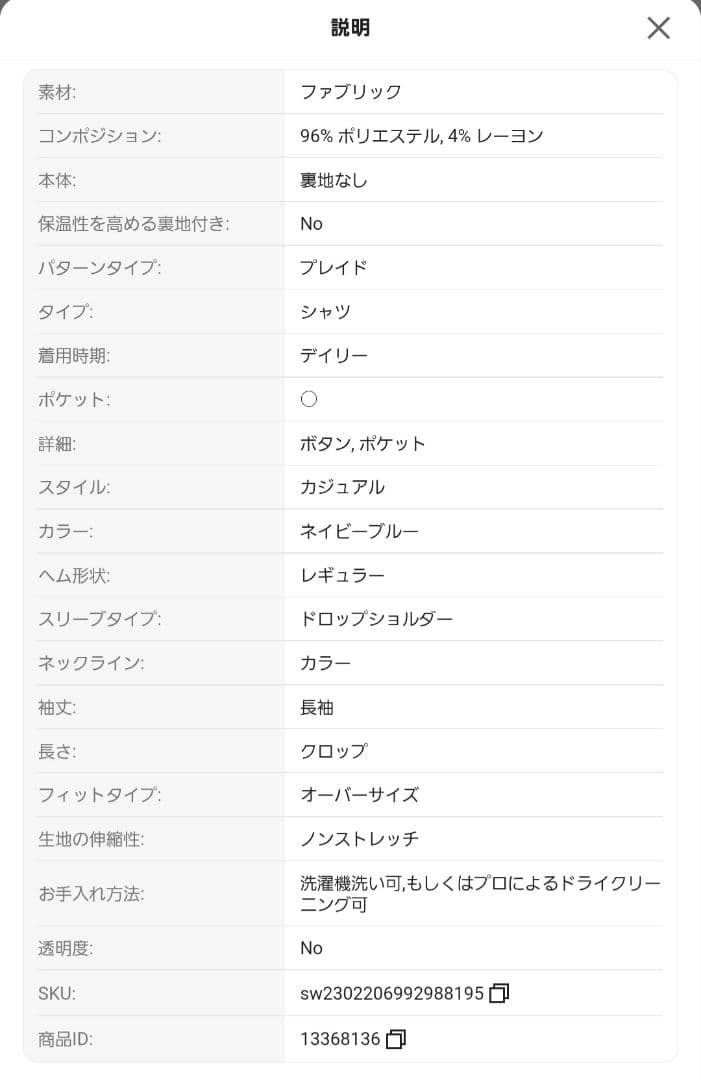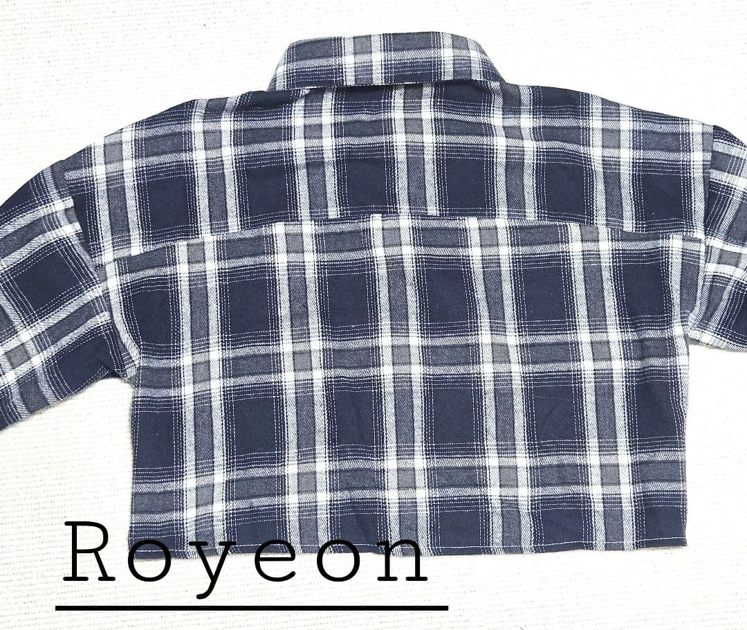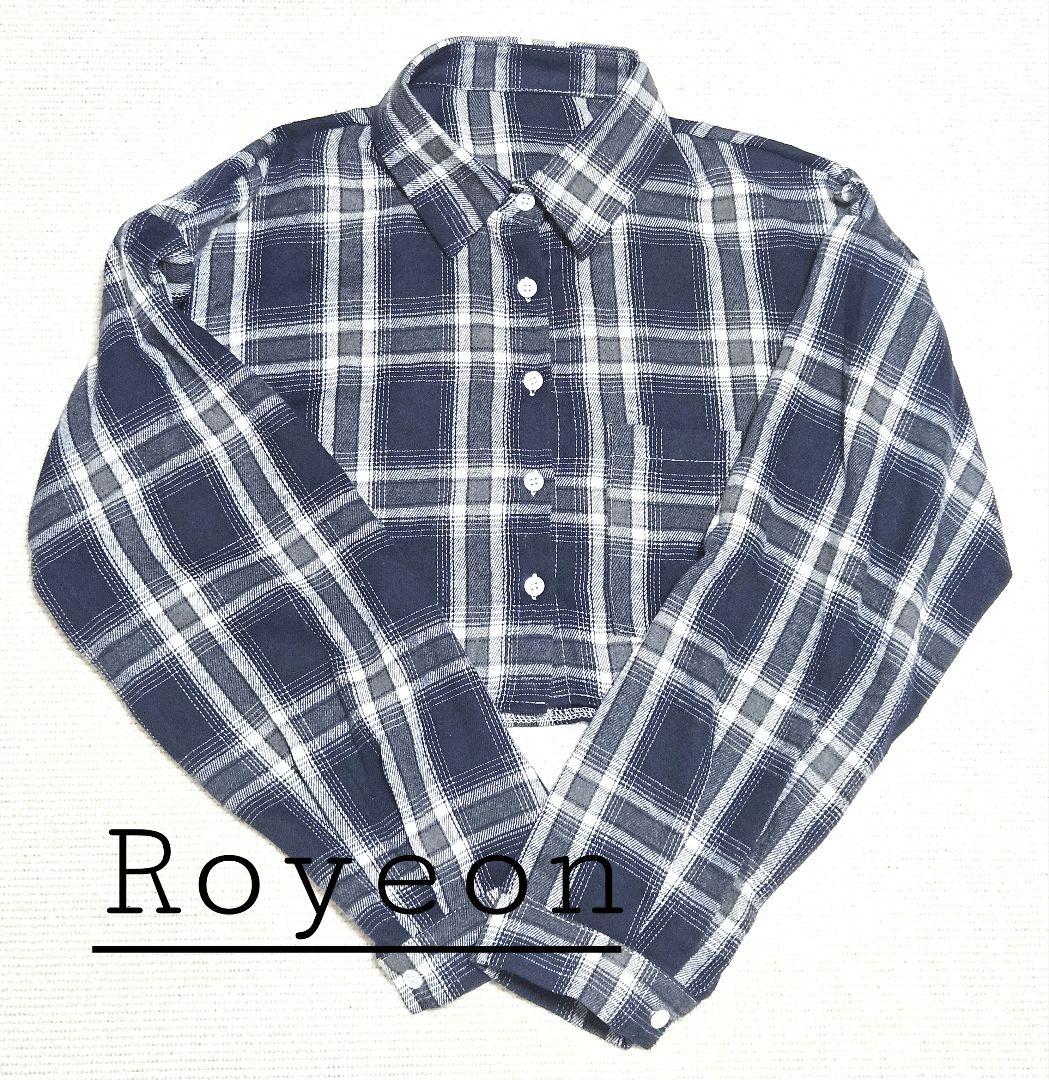 SHEIN∞チェック柄ドロップショルダークロップシャツ/ネイビー^^♪