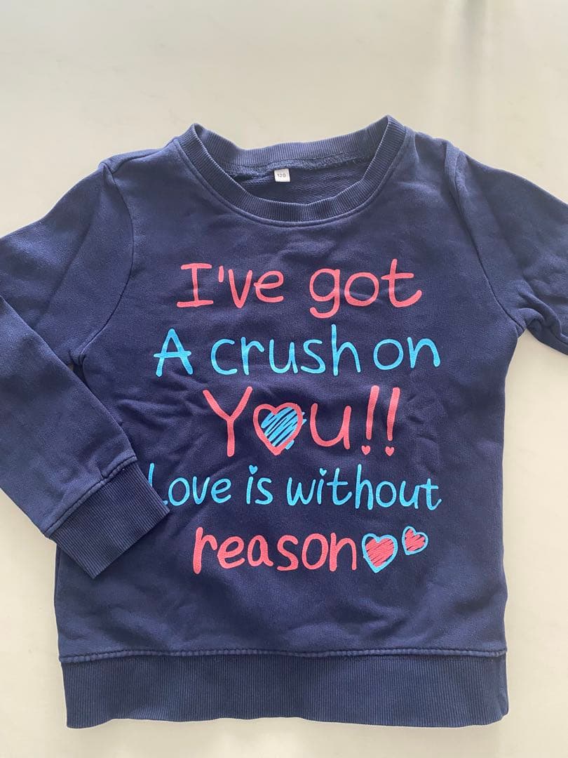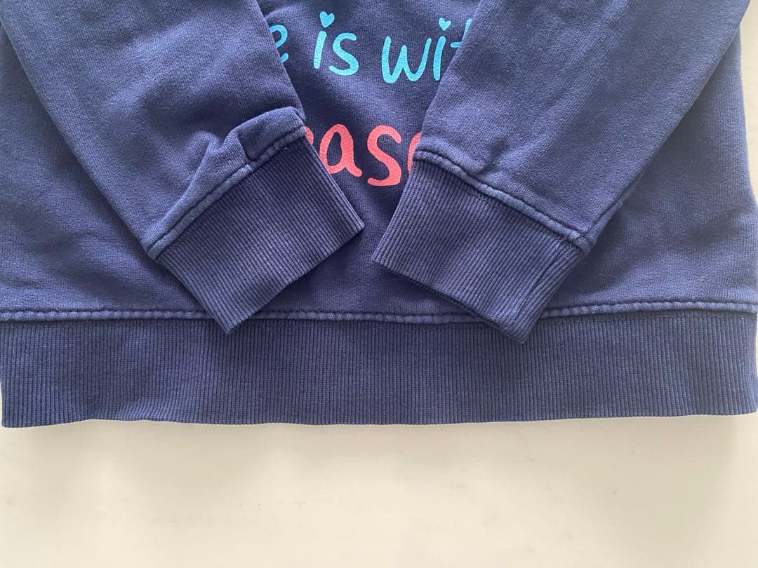 サイズ120 クルーネックトレーナー ネイビー 英字・ハート