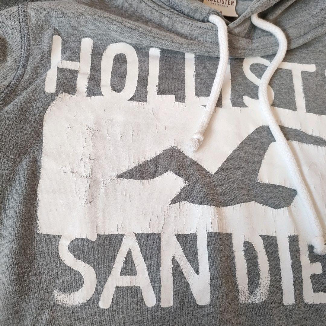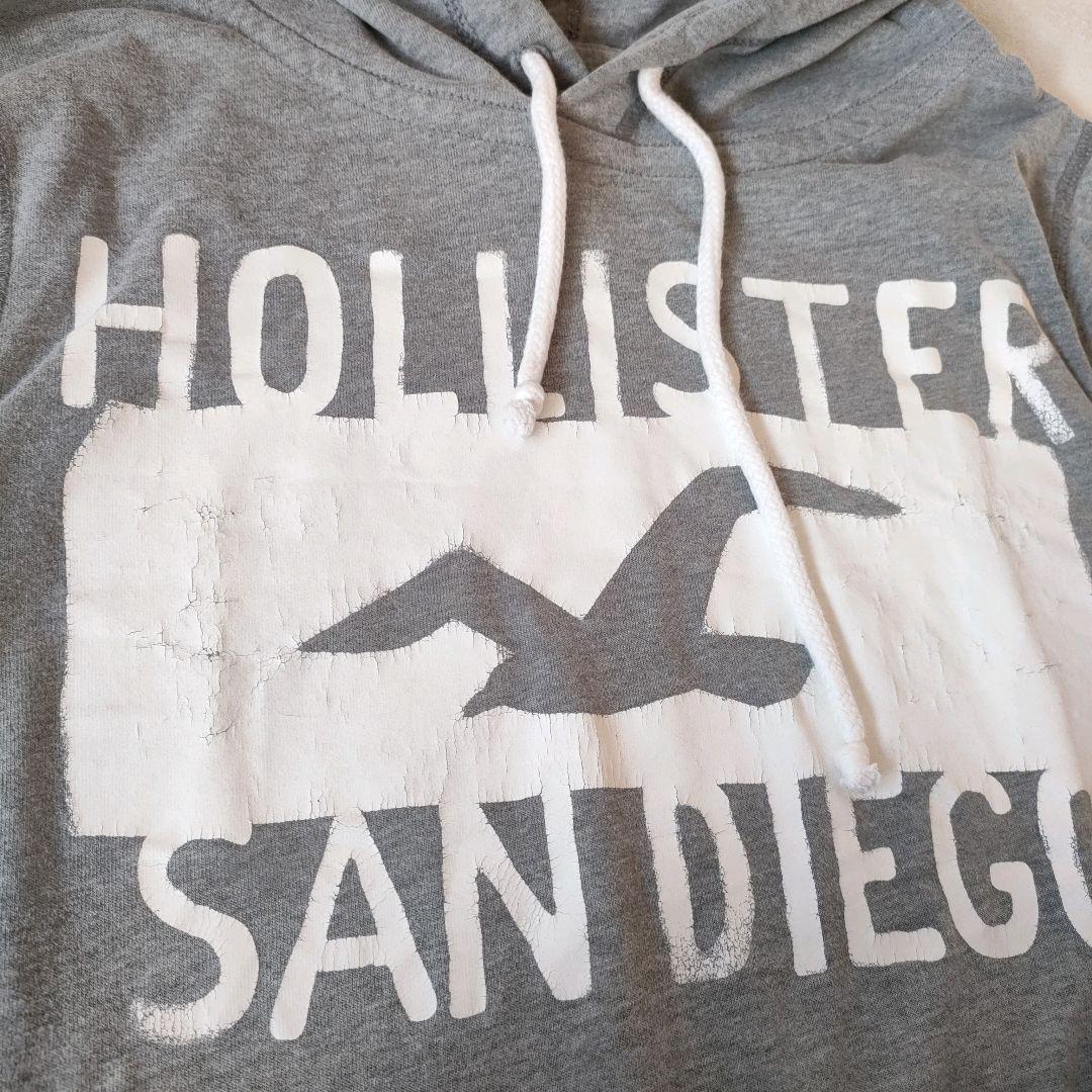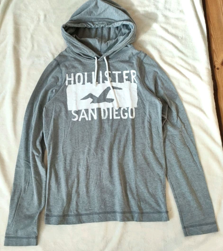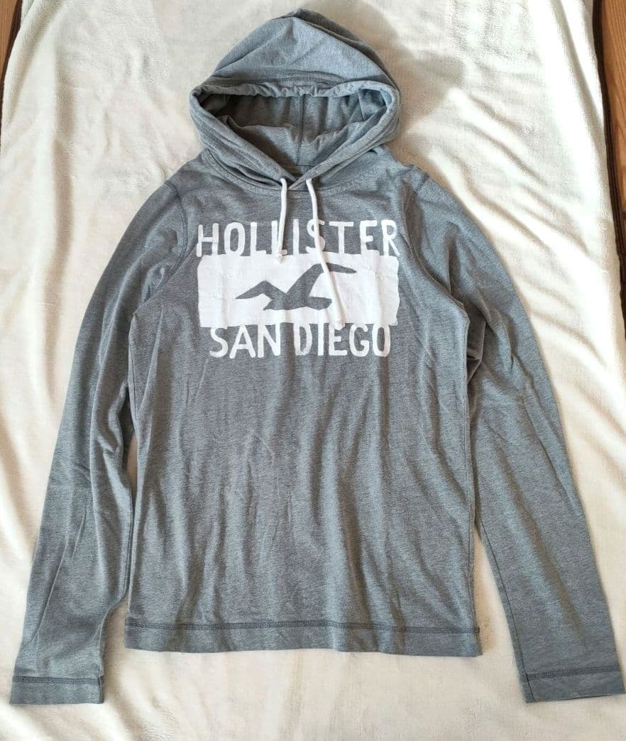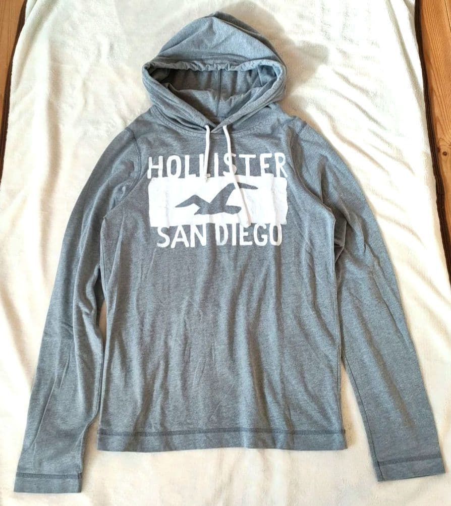 古着 ホリスター デカロゴ 長袖カットソー M フード付 ロンT 細身