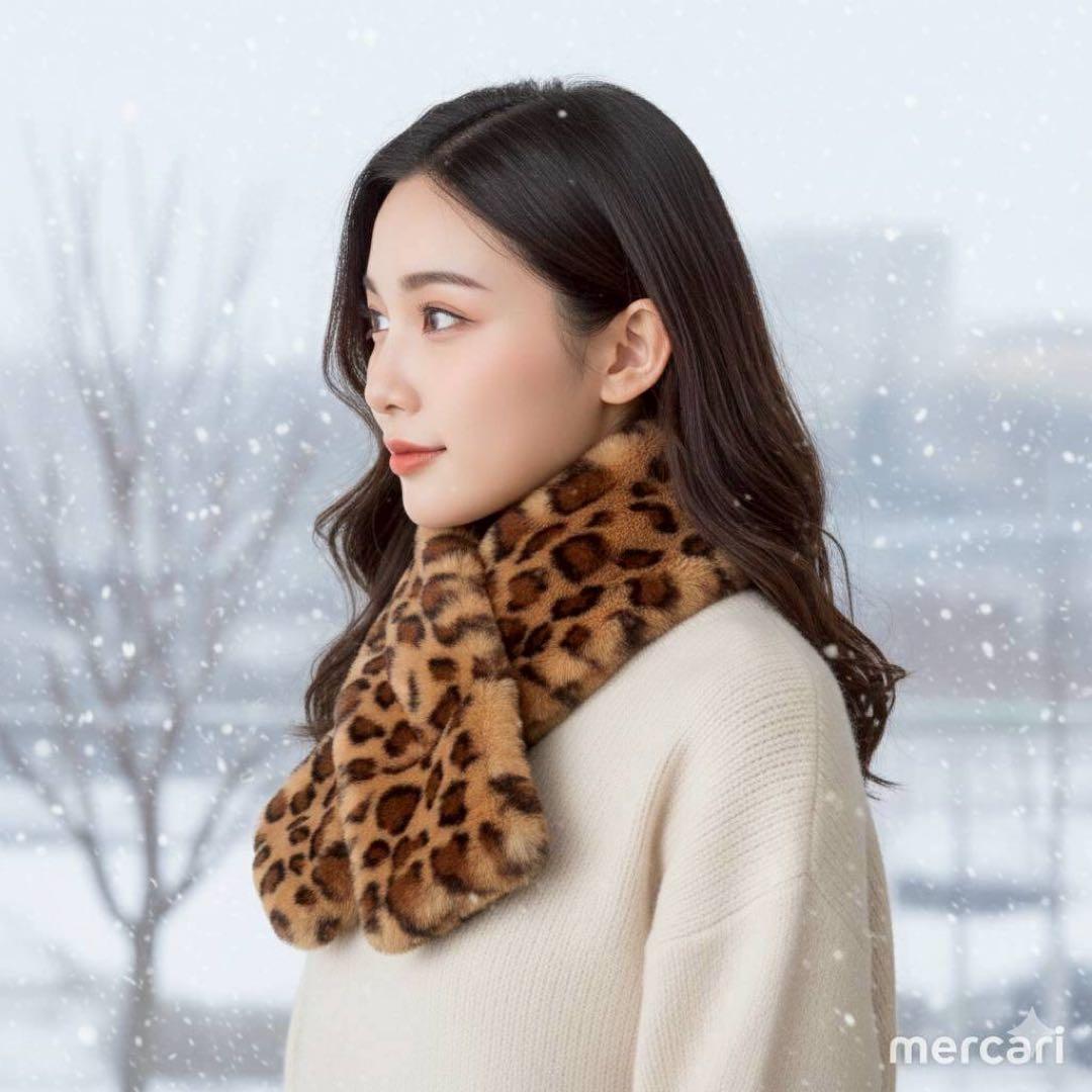 マフラー スヌード レオパード ヒョウ柄 フェイクファー 秋 冬 防寒