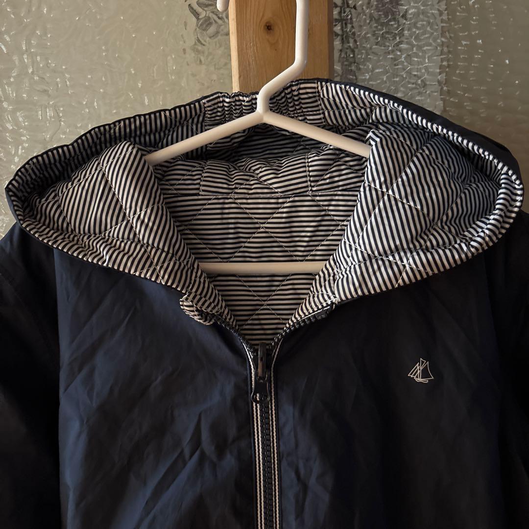プチバトー ネイビー ストライプ柄 フード付きジャケット 128 男の子