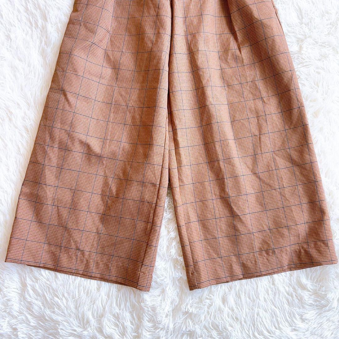ザショップティーケー ガウチョ ワイドパンツ チェック柄 ブラウン(L) 秋素材