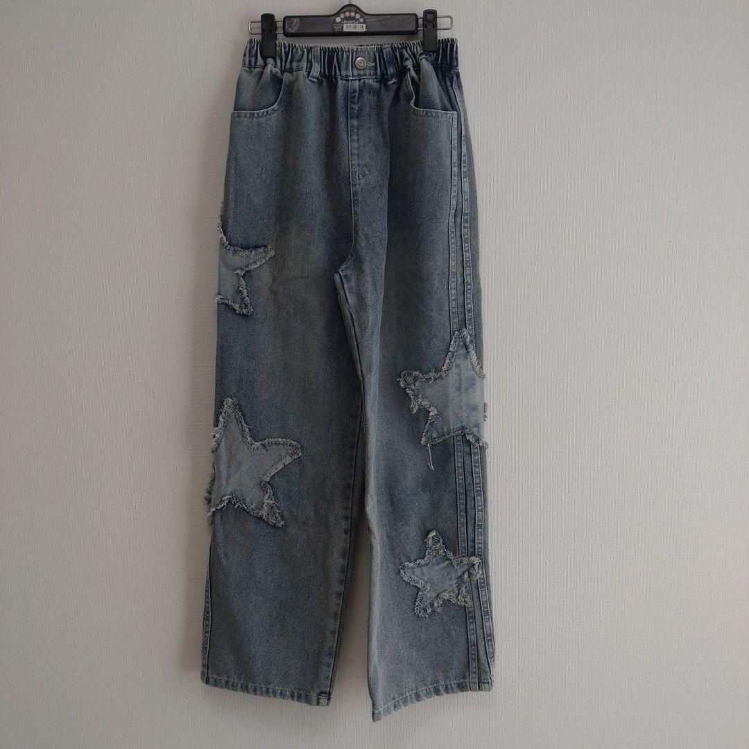 カジュアルパンツ ベージュ・デニム 星型パッチ 2本セット