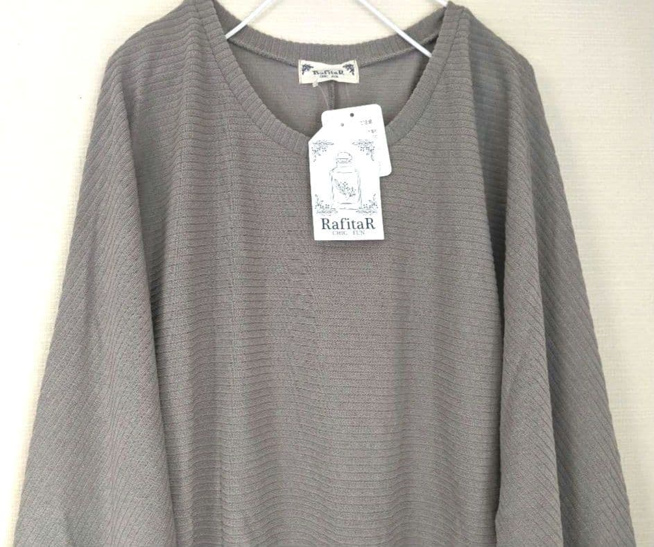 新品【大きいサイズ】RafitaRグレー横リブドルマンプルオーバーチュニック3L