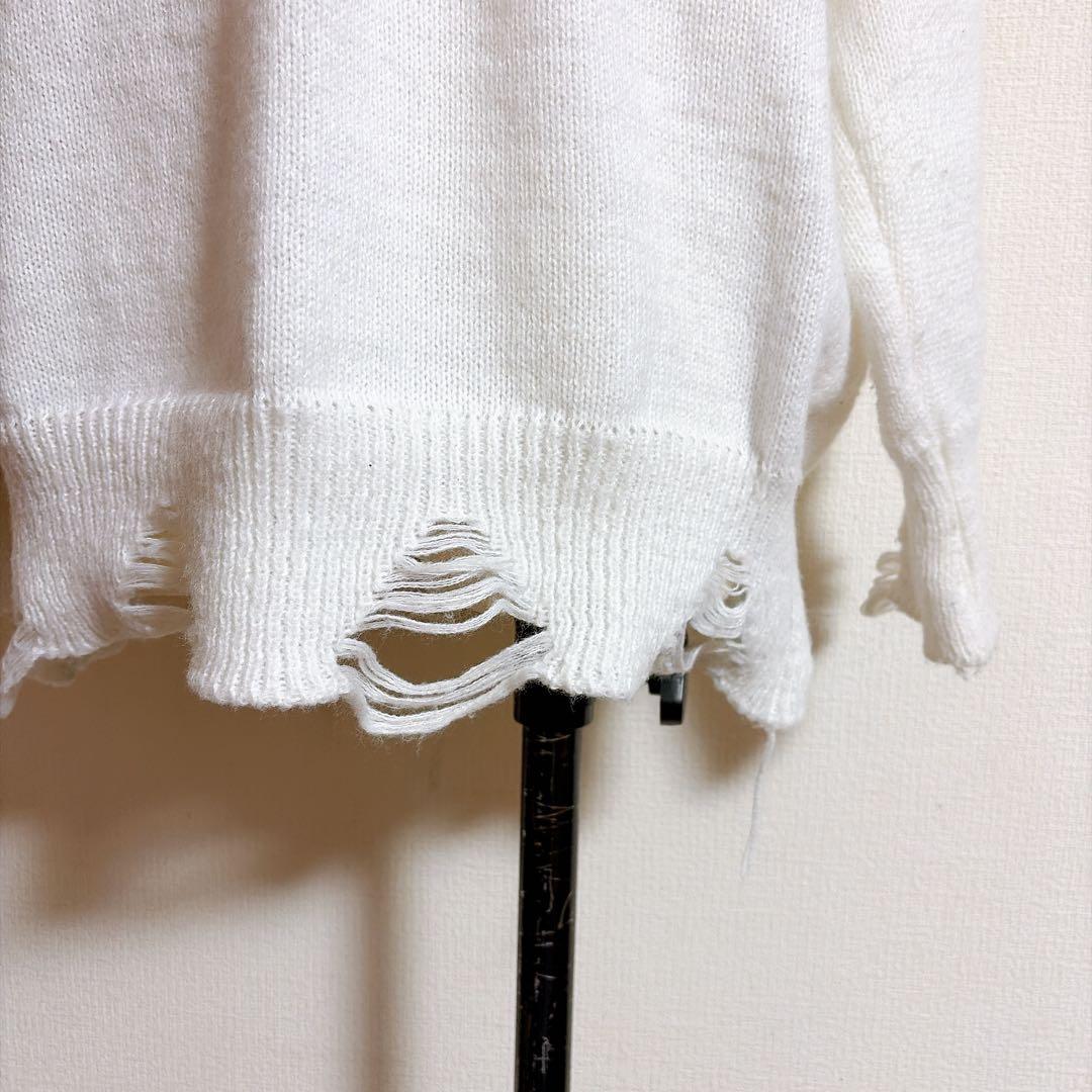 デニム蝶デザイン ホワイトニットセーター freeサイズ