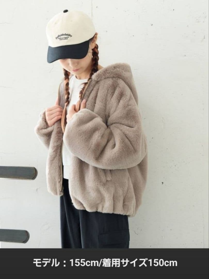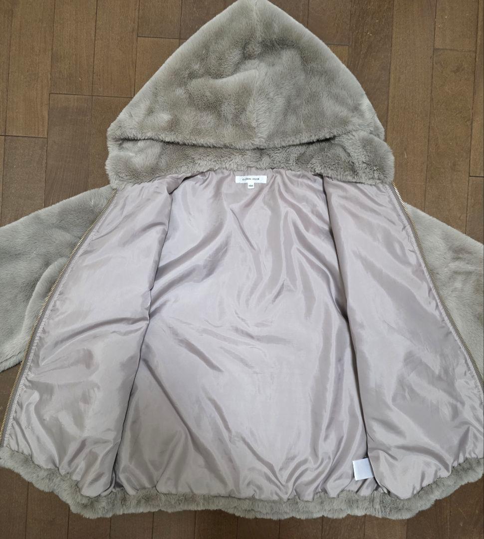 【GLOBAL WORK】洗えるフワモコファーZIPパーカー160cm