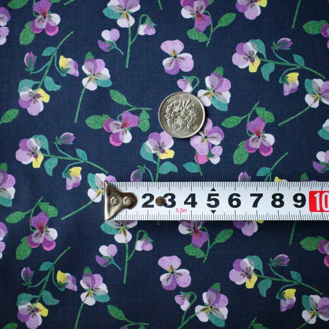 リバティ91. パンジー・スキャッター タナローンプリントはぎれ生地 紺むらさき